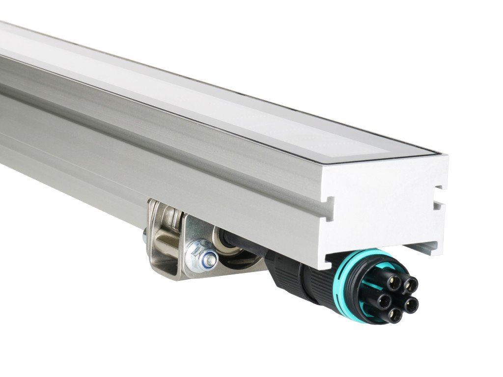 One-Block-Design stands for an innovative concept in which the housing is manufactured from a single part. This reduces the number of sealing surfaces, possible weak points in the housing construction, to a minimum. The housing is manufactured from selected materials such as highly finished extruded aluminium profile and low-iron oxide tempered glass, which ensures a long lifetime of the luminaire even in the most adverse environments.