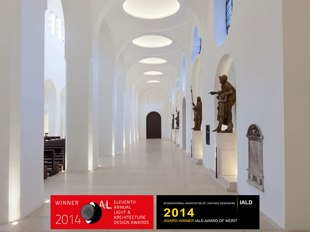 Clear lines, contrasting shapes and reduced decoration, along with state-of-the-art illumination make a breath-taking impression and palpable spirituality in the nave of Augsburg‘s newly created Saint Moritz church.